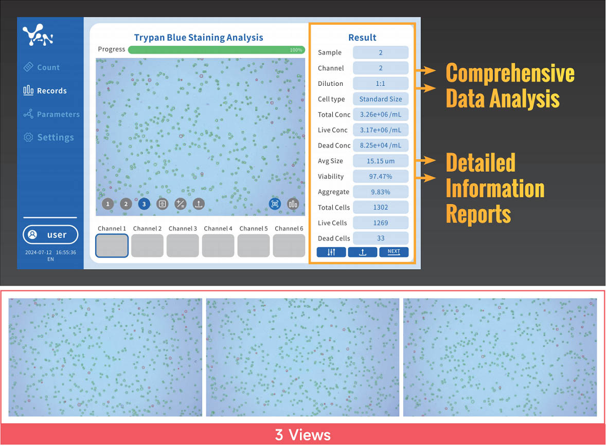 6 channel throughput, fully automatic and precise counting, comprehensive data analysis report